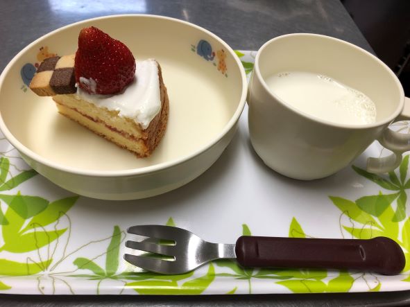 今日のおやつはお誕生日ケーキ♪