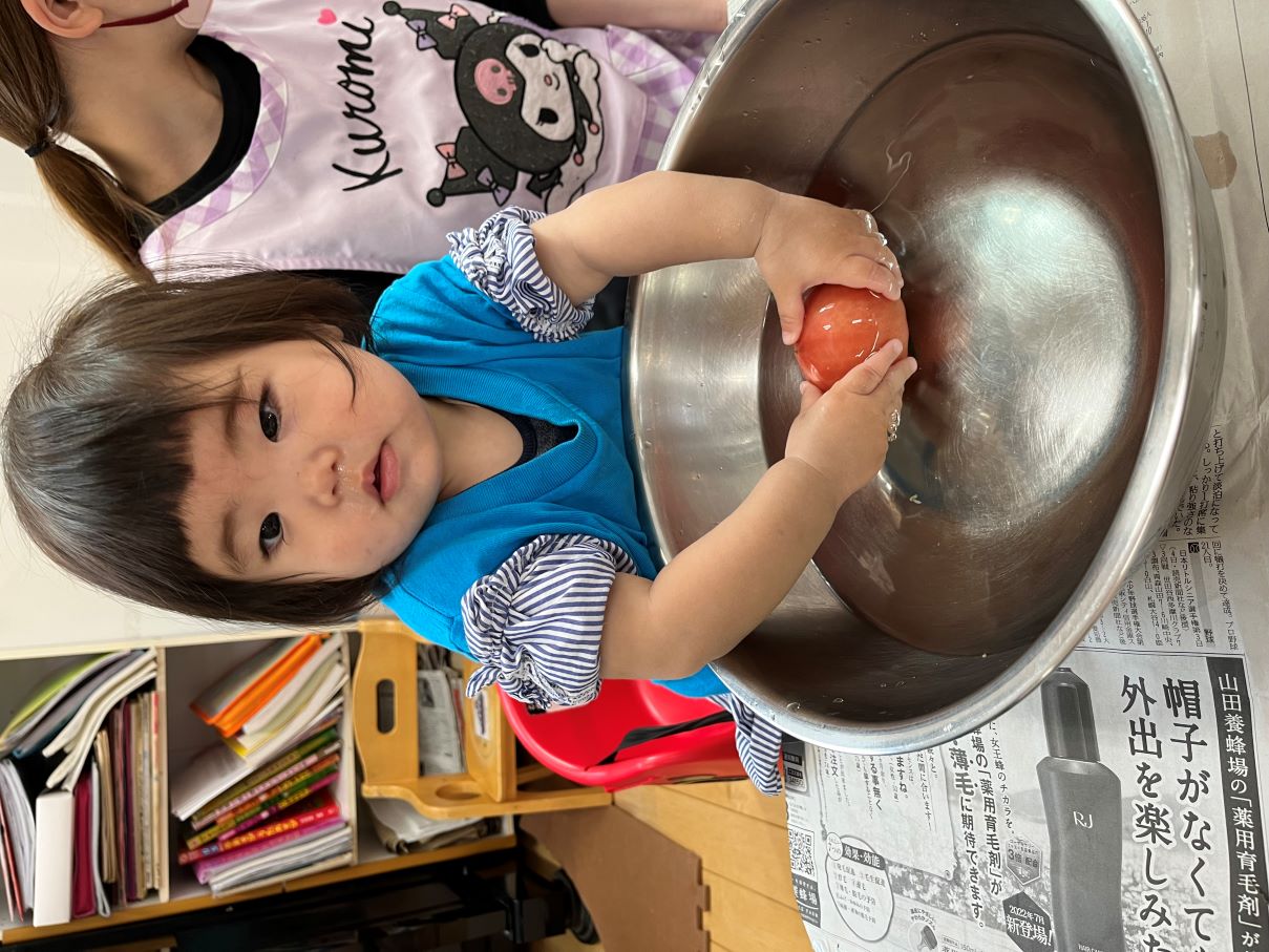 野菜に直接触れることで興味をもって、苦手な野菜でも残さず食べてくれると良いなと思います(⌒∇⌒)