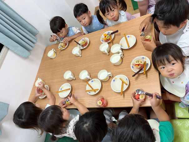 おやつにすいかフルーツポンチにしてみんなでいただきました♪