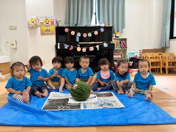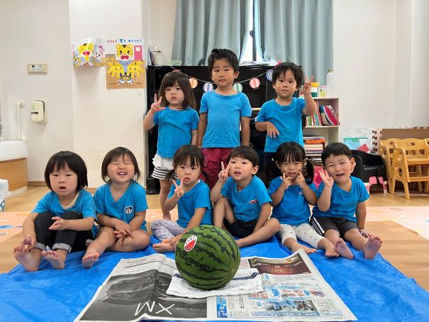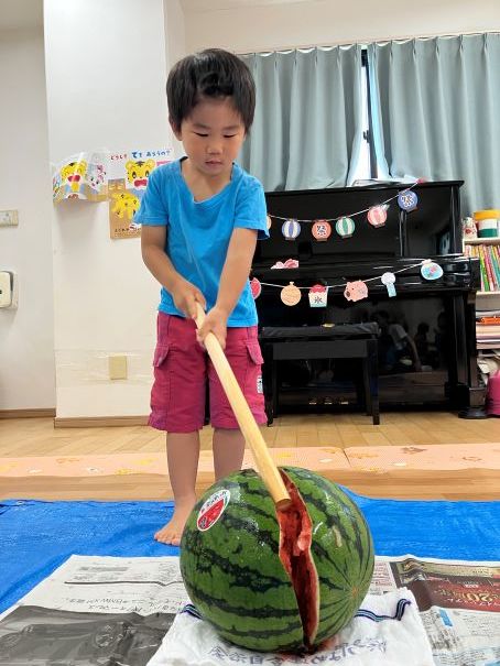 そのあと順番にみんなで協力してすいかを割りました(*^-^*)