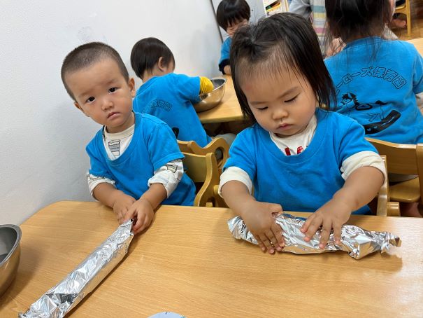 できあがった焼きいもはおやつの時間においしくいただきました(⌒∇⌒)